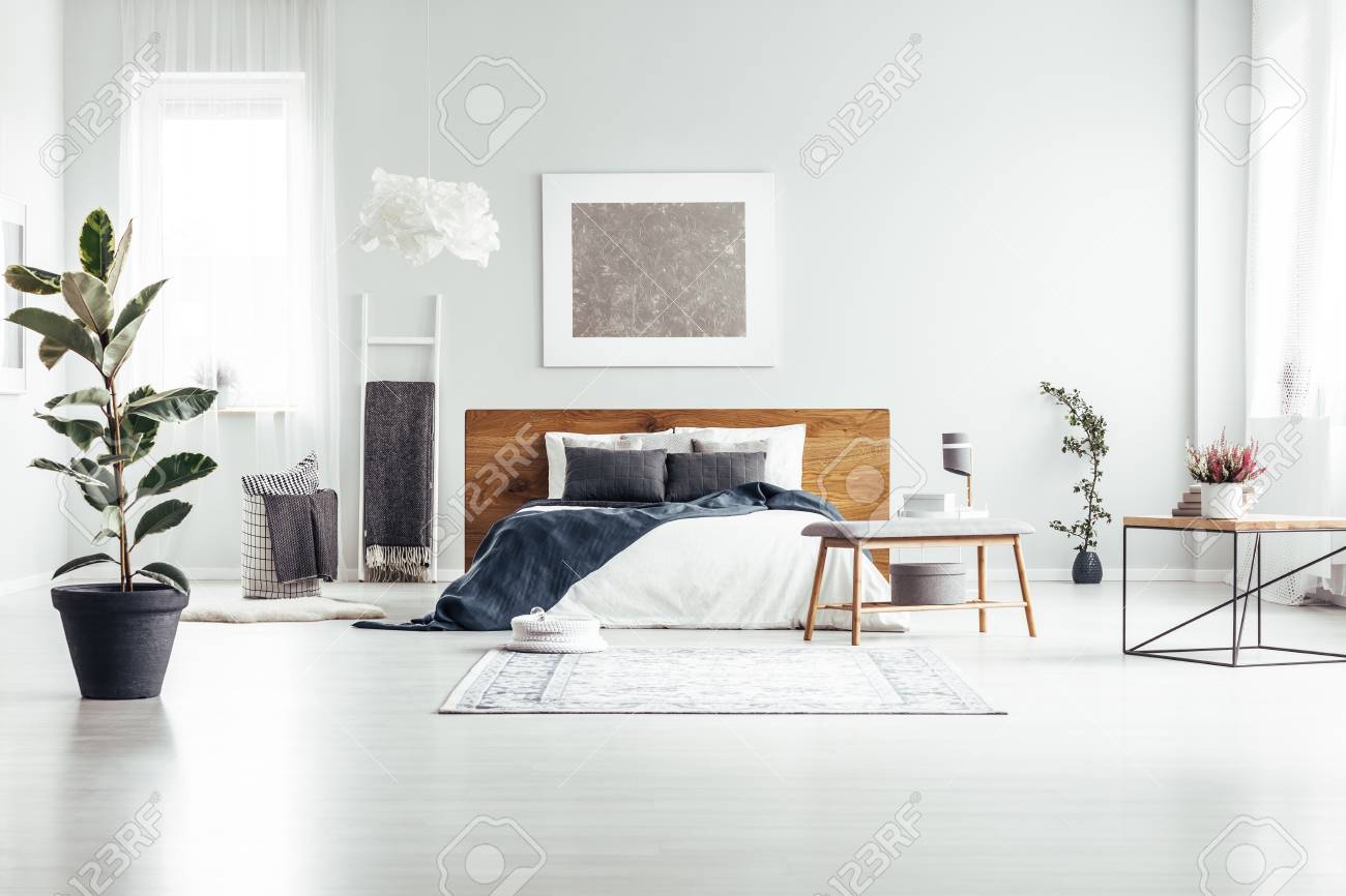 Chambre taupe rehaussée par les cadres décoratifs en noir et blanc. Intérieur cozy de style minimaliste aux murs en gris clair : Retrait gratuit sous 2h en magasin, livraison sur rdv, à l'étage et dans la pièce de votre choix.